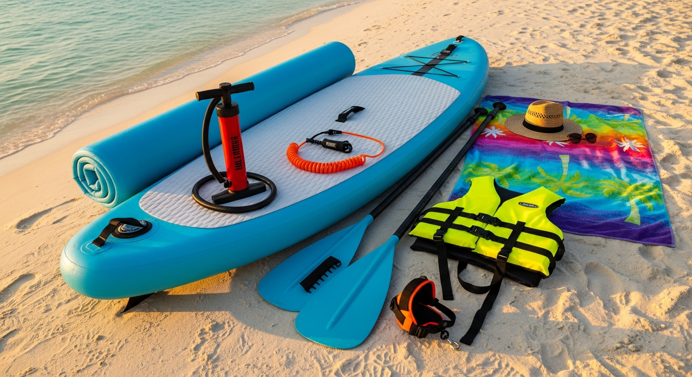 Conseil budget serré : la majorité des packs SUP gonflables incluent planche, pagaie, pompe, leash, sac de transport et kit de réparation pour 300 à 500 € neuf. Ajoutez un gilet (50 €) et un sac étanche (15 €). Total : 365 à 565 € pour l'essentiel.